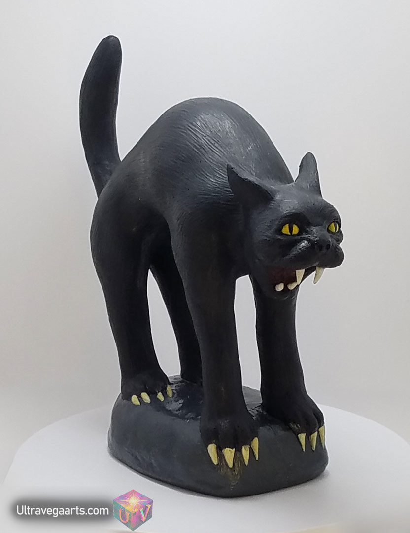 handmade 5.75 Inch Mad Cat scary black cat statue made of cement and acrylic (hand painted Acrylic) (Right View) By UltraVega Arts